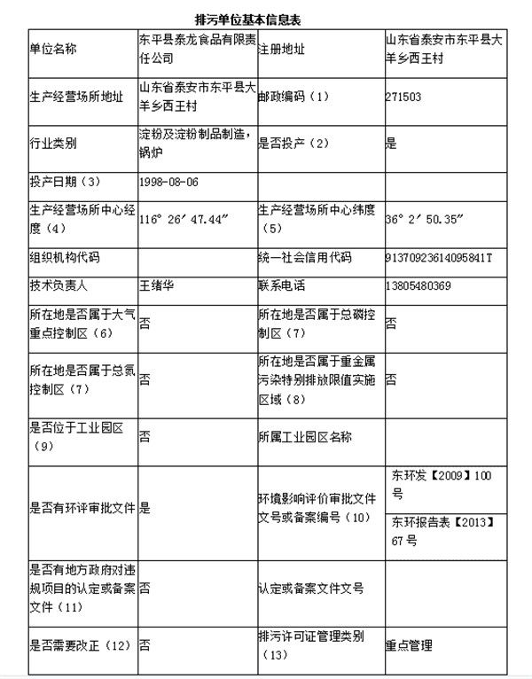 2021年東平縣泰龍食品有限責(zé)任公司環(huán)保信息